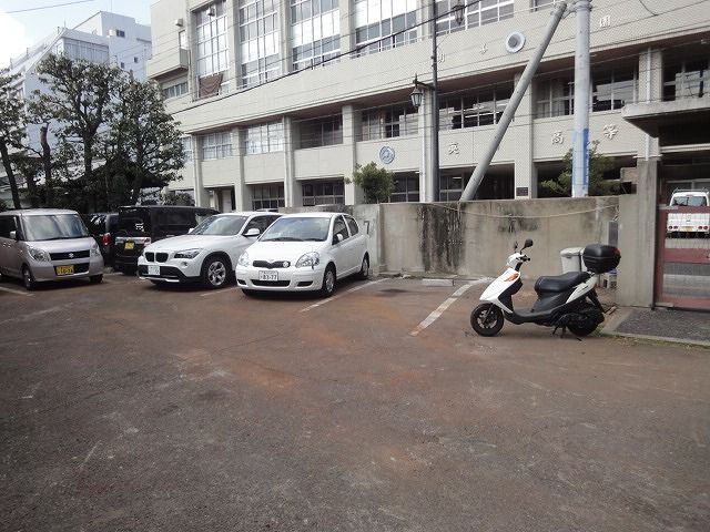 英明高校前、普通車5ナンバー用。 駐輪場あり。